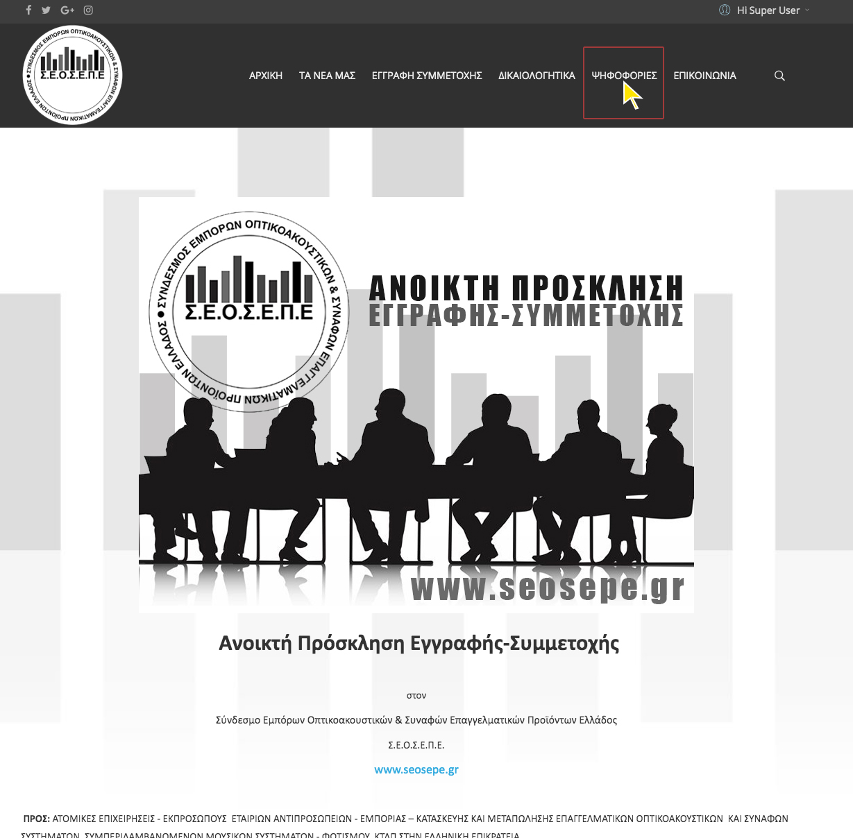 5. ΤΕΛΟΣ μόλις επιβεβαιωθεί ο λογαριασμός μας, κάνουμε login με τα στοιχεία που βάλαμε παραπάνω και θα δούμε στο μενού της σελίδας την επιλογή ΨΗΦΟΦΟΡΙΕΣ και πατώντας θα μεταβούμε στην σελίδα για την Ψηφοφορία Δ.Σ.