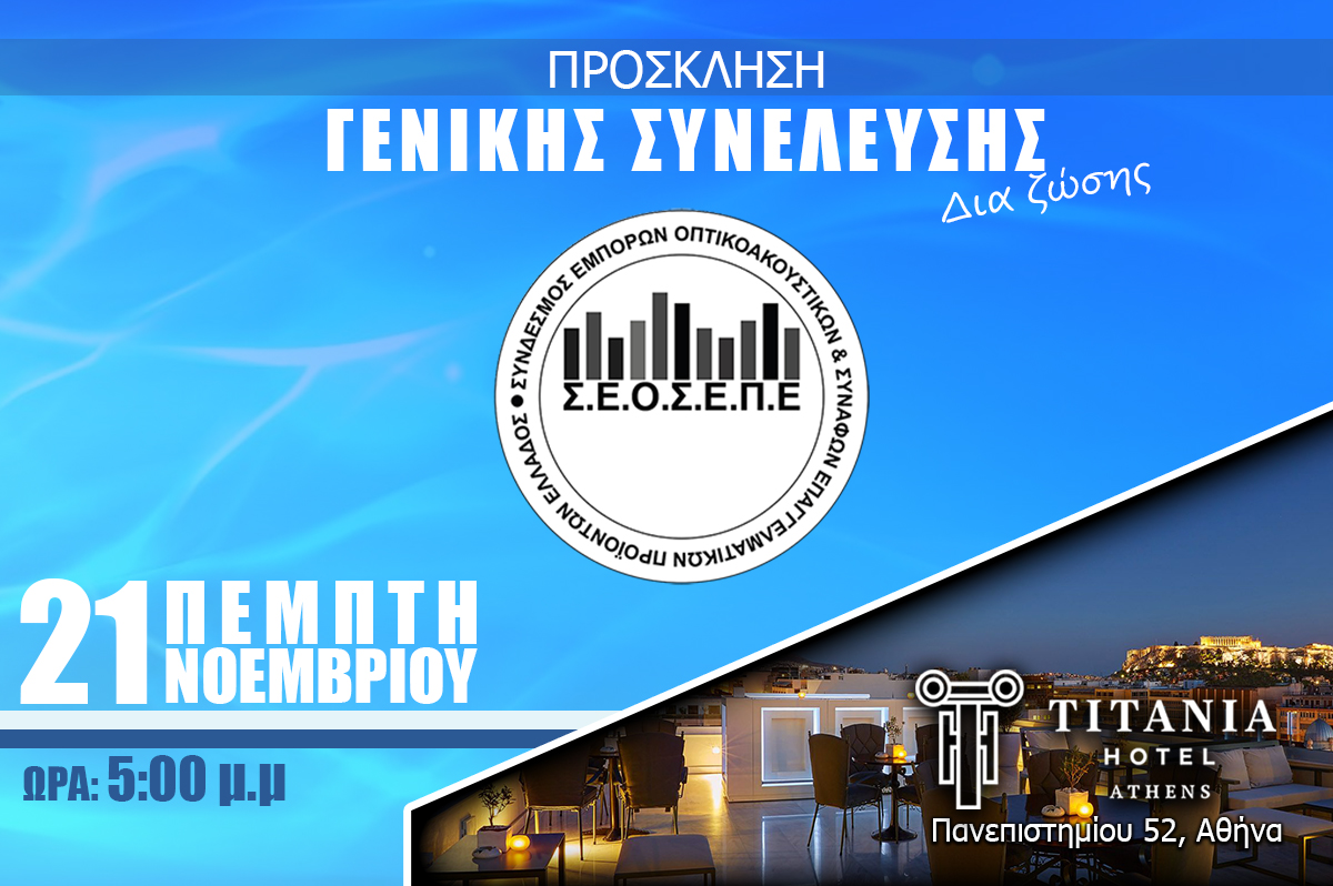 Το Δ.Σ του Σ.Ε.Ο.Σ.Ε.Π.Ε σας προσκαλεί στην Γενική Συνέλευση του συνδέσμου που θα πραγματοποιηθεί